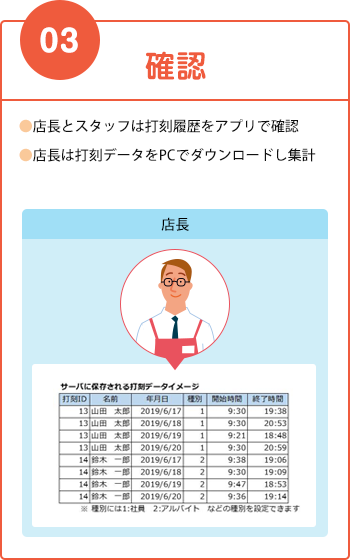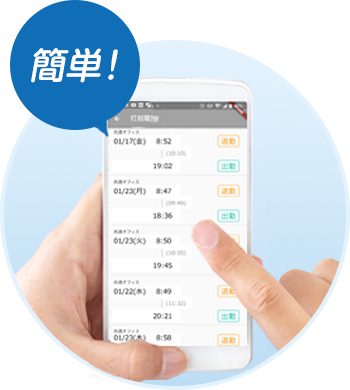 従業員自身のスマホを利用した記録の為、第三者による改ざんは、ほぼ不可能。